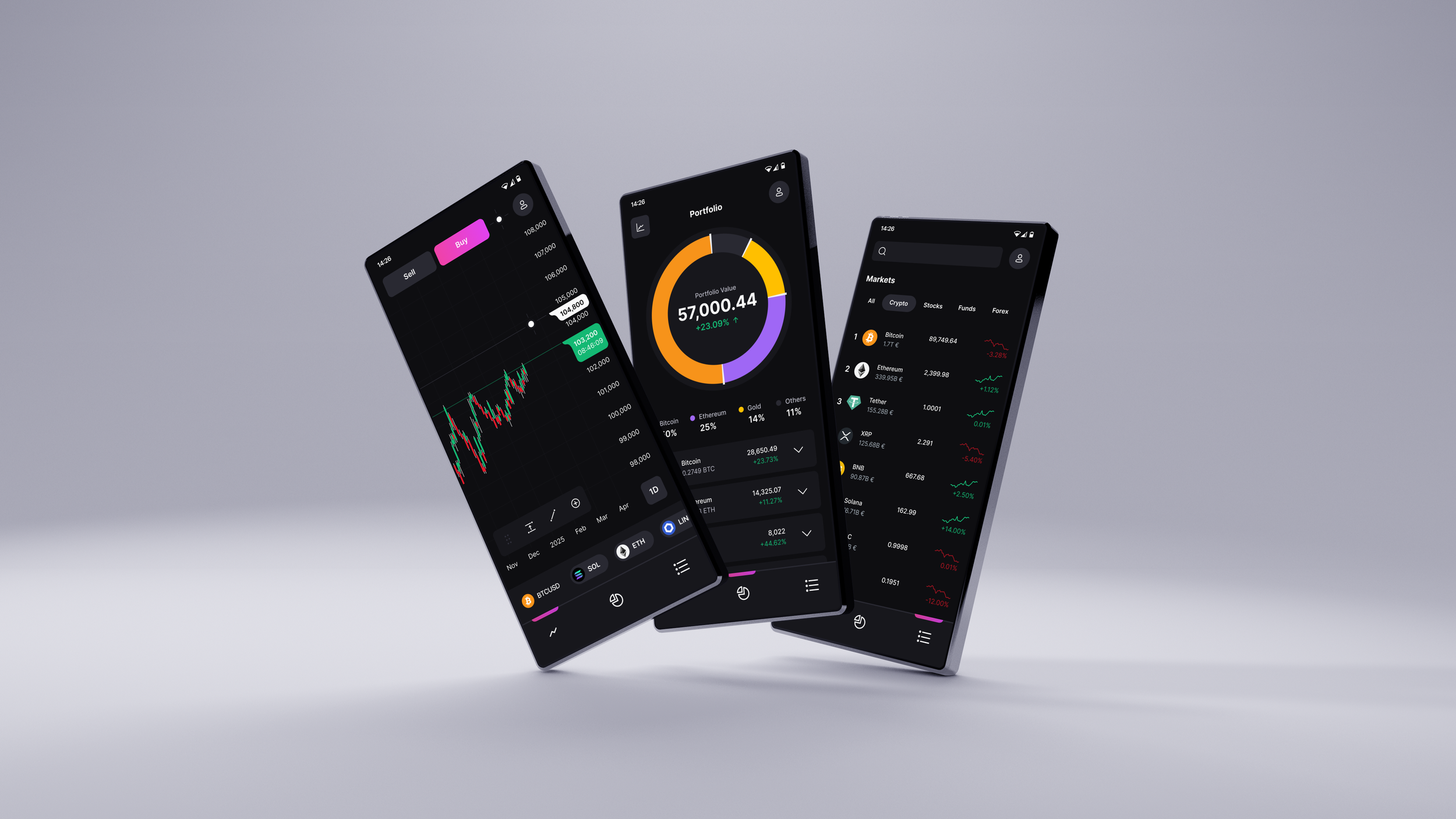 The market section acts as a discovery hub where users can search for and explore a wide range of assets, from cryptocurrencies to stocks and beyond. It is built for quick navigation and smart filtering, helping users find new opportunities without getting lost in complexity.