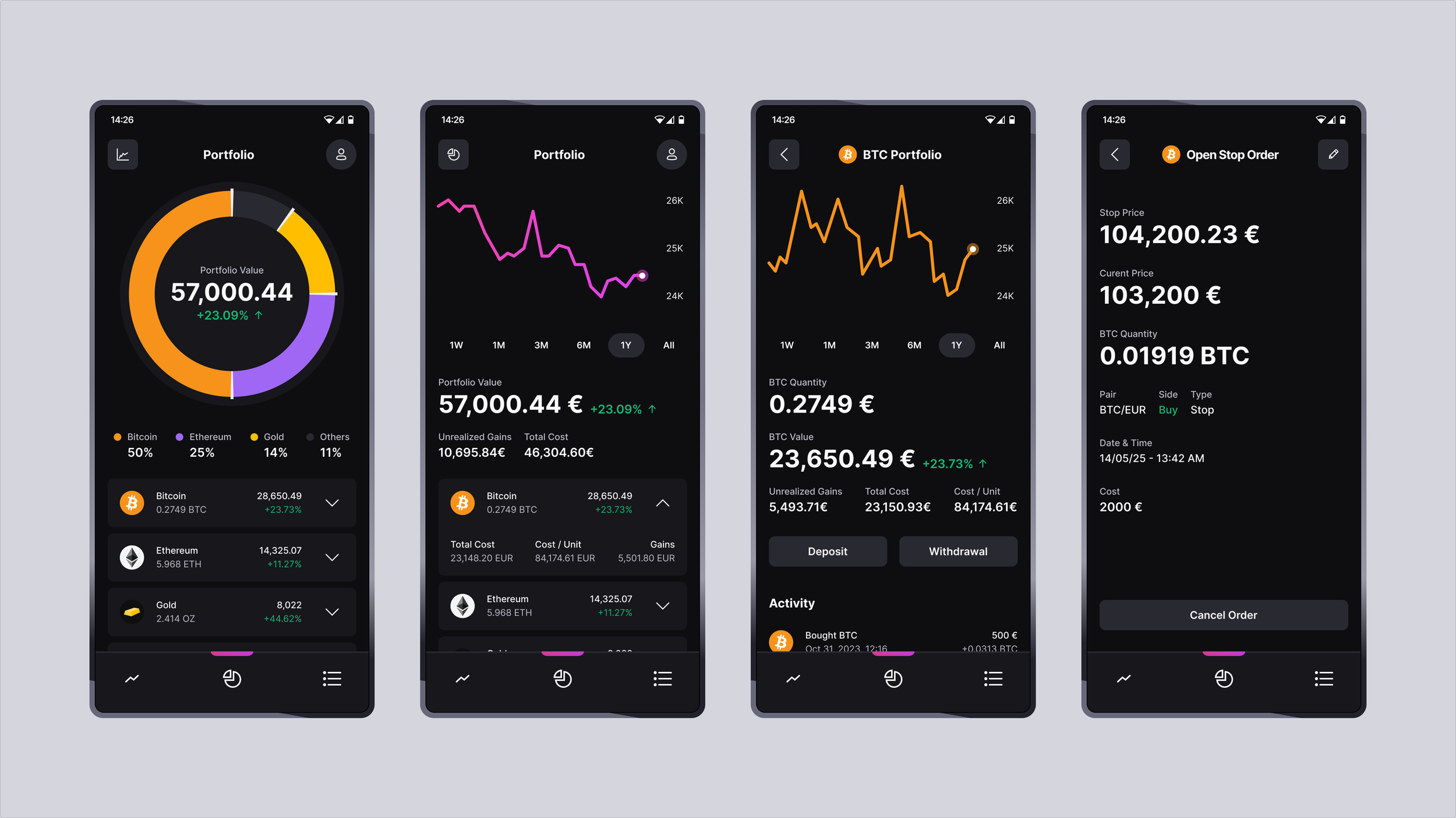 The portfolio section gives users a clear overview of their current holdings and asset allocation. Designed for quick comprehension, it lets users see how their investments are distributed and easily browse individual assets. Whether checking performance or exploring past activity, the layout makes portfolio management straightforward and intuitive.