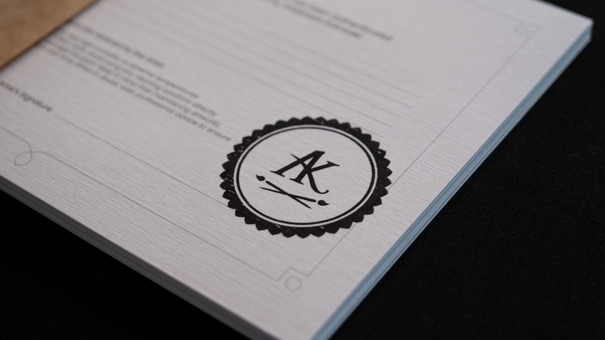 Anastasia commissioned me to design a certificate and stamp for validating her paintings sold to clients.